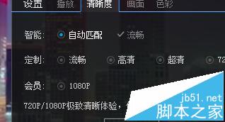 6、其他旁边的设置其中一个调节视频的清晰度的,如果高清的话,我们还是无法享受的,都是会员的。