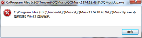 5、运行QQ音乐,出现这个错误提示我们点击确定,不强制更新的情况下不会出现这个提示。若在强制更新的情况下就会出现这个提示,以后每次运行的时候出现这个我们点击确定即可,有时会在你听两首歌后再次出现这个提示我们点击确定后就不会出现了