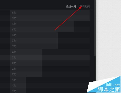 5、如果想看所有时间听的歌曲点击最近一周播放歌曲后面的所有歌曲,就会看到自己听的次数最多的歌曲。