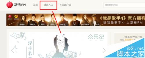 2、之后进入了荔枝fm的官方网站,在左上角上有一个【播客入口】,点击进入,就会进入到拥有电台的播客们的一个播客管理平台