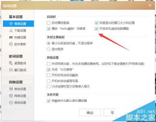 4、然后在设置页面中,我们将开启手机遥控电脑播歌关闭