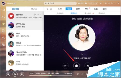 5、觉得好听的话,我们点击大拇指,所选歌曲会移到右边