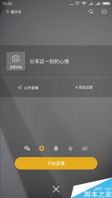 进入到直播界面中,需要粉丝很重要,所以你要先分享到朋友圈、QQ空间等,然后点击开始直播按钮;