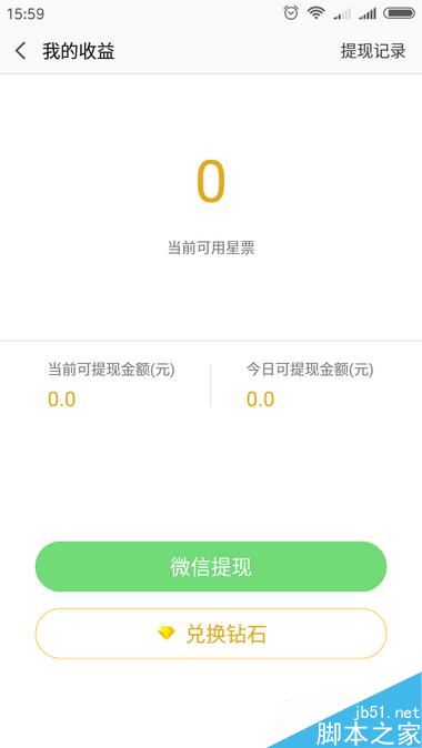 2、当用户星票达到一定值后即可在“我的”页面中的“我的收益”界面进行微信提现及兑现钻石。