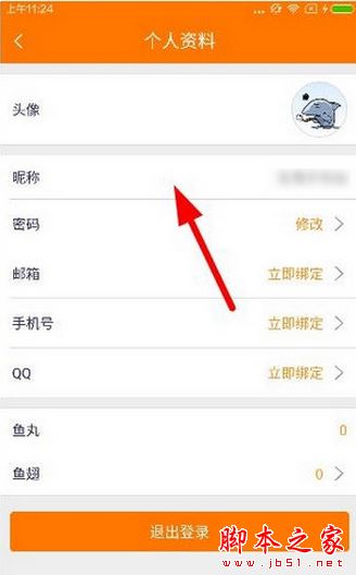 2、然后用户在点击“昵称”一栏的时候,返现并没有响应,这是因为斗鱼tv的昵称一经设定是不可以修改的,所以用户在注册的时候,就要把昵称想好,避免修改