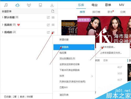 点列表菜单,上传歌曲,上传本地歌曲,要Mp3格式