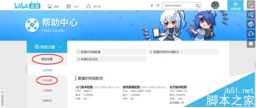 3、进入直播帮助中心之后,大家就可以很轻易地看到,页面的左侧有“成为主播”的字样。