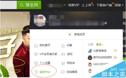 1、首先打开爱奇艺,然后登陆上自己的会员账号,点击用户名,在下拉中点击“安全中心”