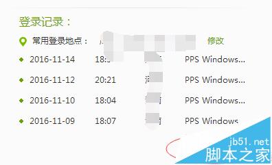 2、然后就进入登陆记录页面,这里有常用登陆地点,点击修改。(常用地点除默认的另外只能添加三个,我的是满了,所以是修改,没有添加过的显示的是添加二字)