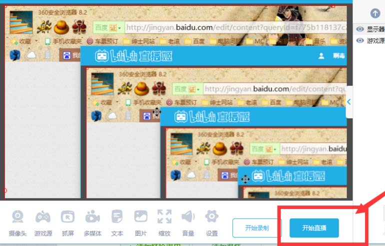6、然后我们可以看到直播姬里面就会出现我们电脑屏幕里的内容了。