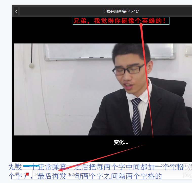 2、和弹幕墙原理一样,只不过是加了几个空格,示范:看图
