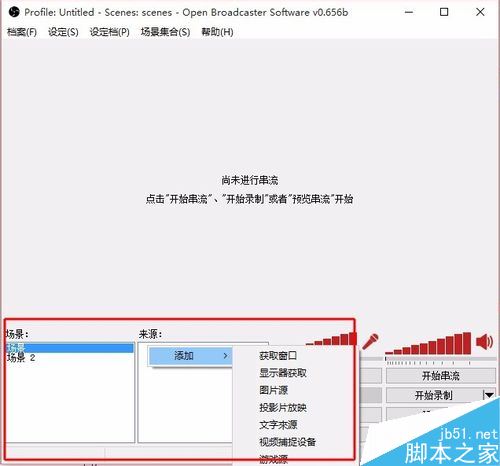 I 、添加场景:鼠标移至场景,右键添加场景,无需设置,确定即可II 、来源:所有游戏建议优先选择游戏源方式直播,第二是显示器获取,第三是获取窗口获取窗口:就是添加单个窗口给观众看显示器获取:单屏幕或多屏幕选择某个显示器全屏幕或部分屏幕给观众看(英雄联盟选择)游戏源:全屏游戏必须用游戏源来直播,否则观众看是黑屏。无边框或窗口化全屏可以直接用添加窗口进行直播。(DOTA2,炉石选择,英雄联盟) (若显示器获取或者获取窗口时,预览串流显示黑屏,请在获取窗口的设置界面选择”兼容模式”)III、保证服务器和串流码填写正确后,选择开始串流。进入游戏后,把图像改为无边框或窗口全屏化