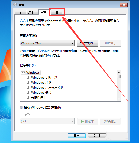 3、打开声音设置窗口之后,我们点击导航栏上的“通信”选项 如图