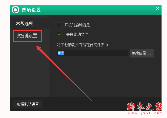 4、在“选项设置”中,我们可以看到有两个选择,我们选择“快捷键设置”,如图示。