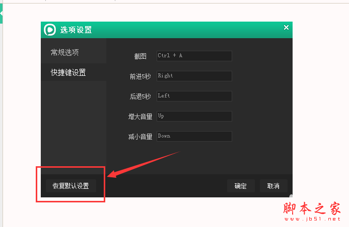 7、当然,如果你需要恢复以前的官方设置,你也可以来到选项设置中,找到左下侧的“恢复默认设置”,然后点击“确定”即可。