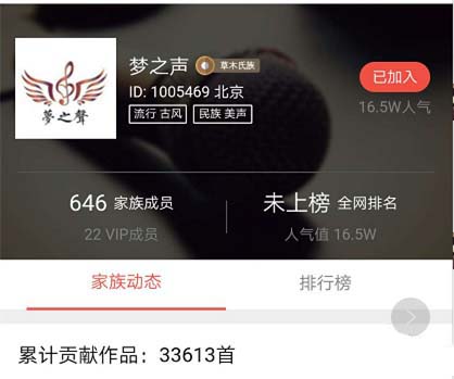 2、家族内积累核心成员1000人以上,核心主唱100人以上。