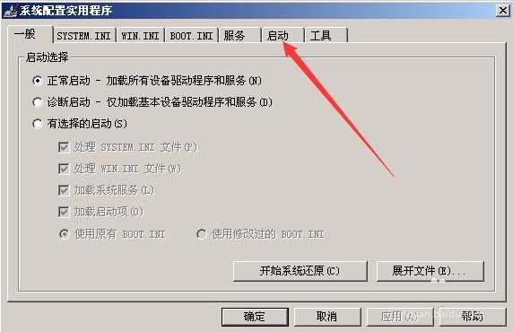 5、在打开的系统配置实用程序窗口中,点击上面的“启动”标签