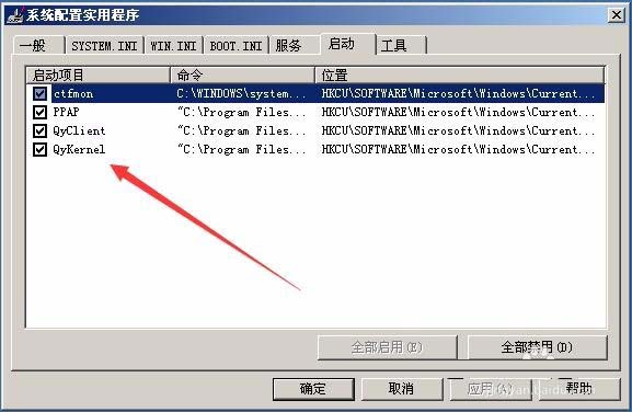 6、这时可以看到爱奇艺客户端的启动链接,把其前面的对勾去掉