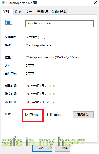 4、保存好后右键该文件,选择属性,在属性对话框里勾上只读属性