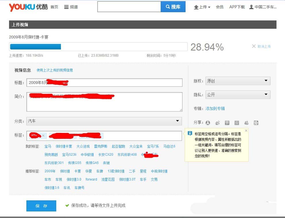 3、上传的时候,我们的视频说明的文字,不要和之前的一样