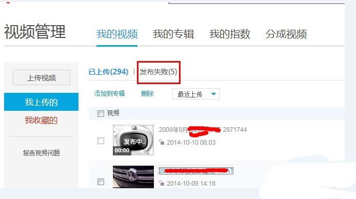 5、对于那些发布失败的视频,我们可以在“发布失败”的项目里面找到列表。