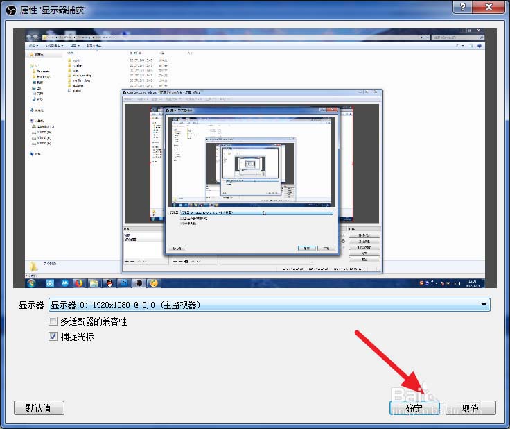 2、来源中选择+号,选择显示器捕获,你也可以选择游戏捕获