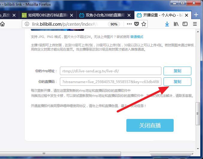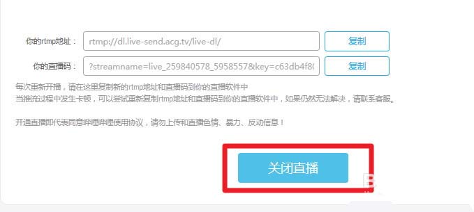 8、返回到B站的直播设置界面,你可以将第一步骤第5小步骤的两个地址,按照顺序复制到这个框中了