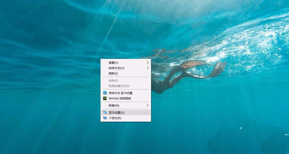 2、在我们的电脑上右键点击一下,然后选择“显示设置”进入到我们的设计界面。