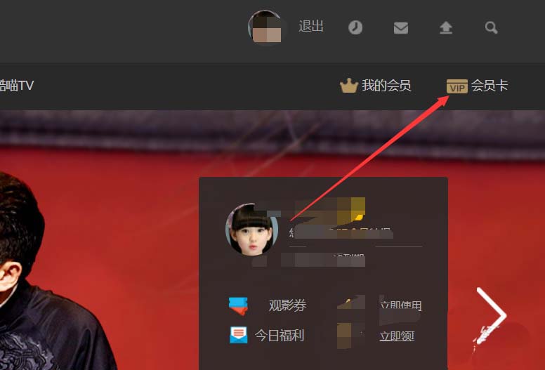 4、进入优酷VIP会员页面后,直接点击右侧的【会员卡】,如下图所示。