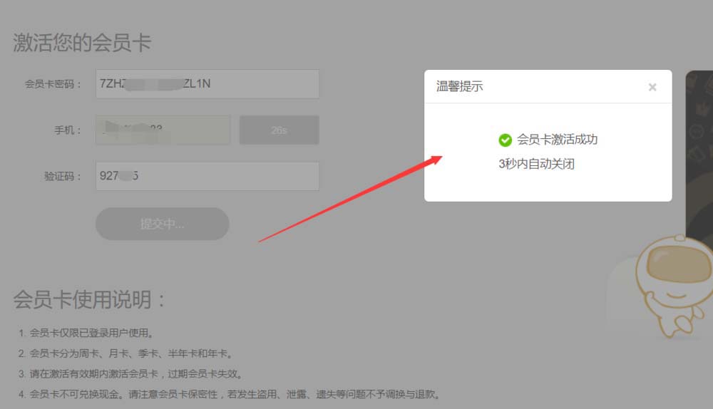 以上就是优酷使用激活码激活会员卡的教程,希望大家喜欢,请继续关注脚本之家。