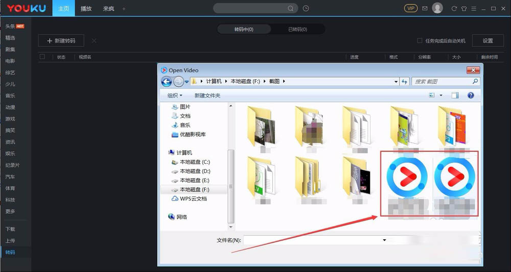 4、选中需要转码的视频,点击“打开”;