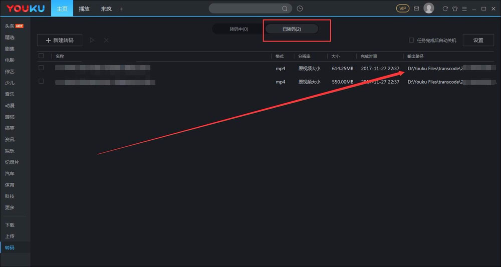 7、视频转码成功后,点击“已转码”可以查看你转换为MP4的视频哦,这里还可以看到转码后存储的位置,赶快行动起来吧!bye~~~