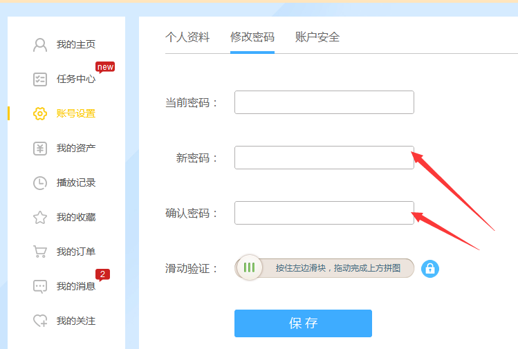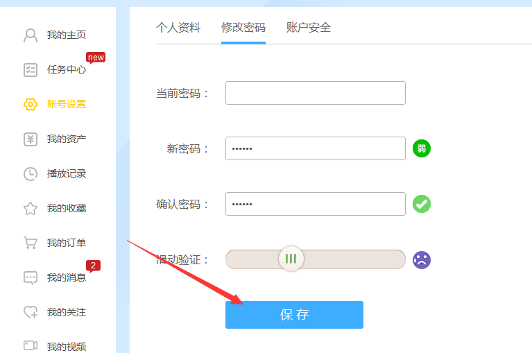 6、新密码和确认密码输入完成之后,点击保存按钮,对数据上保存设置。
