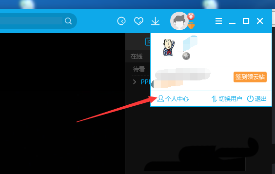 1、首先,打开一个PPTV播放器的界面当中,点击已经登录的账号。